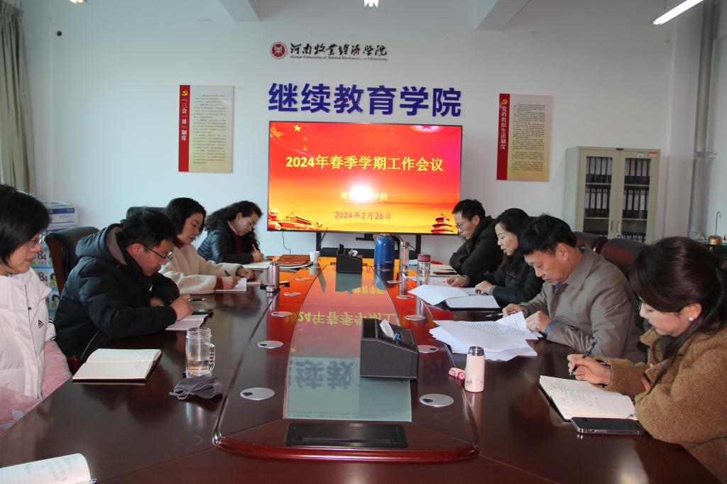 院长宋平对koko体育官网2023年工作和寒假开展的工作进行了总结和回顾,并根据2024年中央1号文件、2024年河南省政府工作报告、河南省2024年教育工作会议精神,结合koko2024年党政工作要点和学院实际,分析了我国继续教育面临的形势任务,对学院2024年工作重点进行了详细讲解。他指出:一是要提早谋划,持续推进。要结合学校党政工作要点和目标任务,做好开学初各项准备工作,细化责任分工,加强统筹协作,逐级推动落实,在党建工作、科研创新、教育教学、培训等方面持续发力,提质增效;二是要改变作风、转变观念。要深刻认识到脚踏实地、求真务实是做好各项工作的重要保障,善于摒弃固化思维,在工作创新、教学改革、服务社会等方面持续强化学习、提升能力、改进作风,切实增强工作的主动性、科学性与预见性,进一步解放思想、追求实效,把落实整改作为推动工作、加快发展的具体行动,增强继续教育服务供给能力;三是要坚持“大继续教育理念”,结合高等教育新的发展需求和职业教育改革要求,对标对表上级部门工作要求,不断完善体制机制,强化管理,提高团队素质,主动服务社会对继续教育需求;四是学历教育要在“精”上下功夫,校内以不断提高教育教学质量为目标,校外引进优质教育资源,提高管理和教育教学水平;五是非学历教育要在“强”字上做文章,持续贯彻落实《koko体育官网非学历教育培训管理办法》,探索对校内各类继续教育项目实行“管办分离”的管理模式,积极引导校内力量投入非学历教育培训,服务社会不同层次需求。