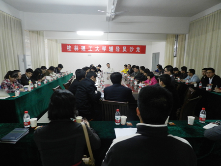 3月27日晚,学校在雁山校区辅导员之家举办学风建设专题辅导员沙龙。学校党委副书记、纪委书记赵君,学工部(处)、团委负责人及各学院辅导员代表50多人参加了沙龙活动。 沙龙活动上,20多位辅导员踊跃发言,结合自身对学风建设的理解和学生一线工作实际共同分享了在学风建设方面的做法和体会,分析交流了在学风建设中遇到的困难和挑战,深入探讨了学风建设的新思路、新方法。整个辅导员沙龙气氛热烈,氛围活跃。 赵君副书记仔细倾听、认真记录了每一位辅导员的发言,充分肯定了各位辅导员在学校学风建设中的辛勤付出和对学风建设的深入思考,并以一名老辅导员的身份就为什么要加强学风建设、如何开展好学风建设、如何建立学风建设长效机制与大家一起进行交流探讨,现场回答了辅导员们在抓学风建设中遇到的困惑,鼓励各位辅导员进一步加强学习,强化建设,开拓创新,注重实效,使学风建设由规范要求向习惯养成转变,为进一步优化学校育人环境而不懈努力。