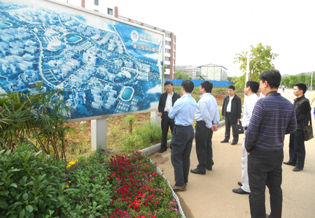 解庆林校长向李水明局长一行介绍beat365雁山校区建设情况