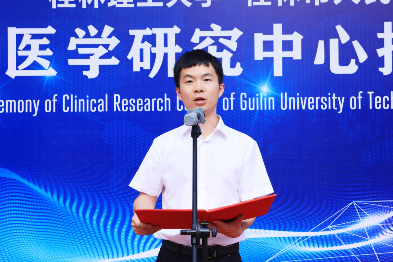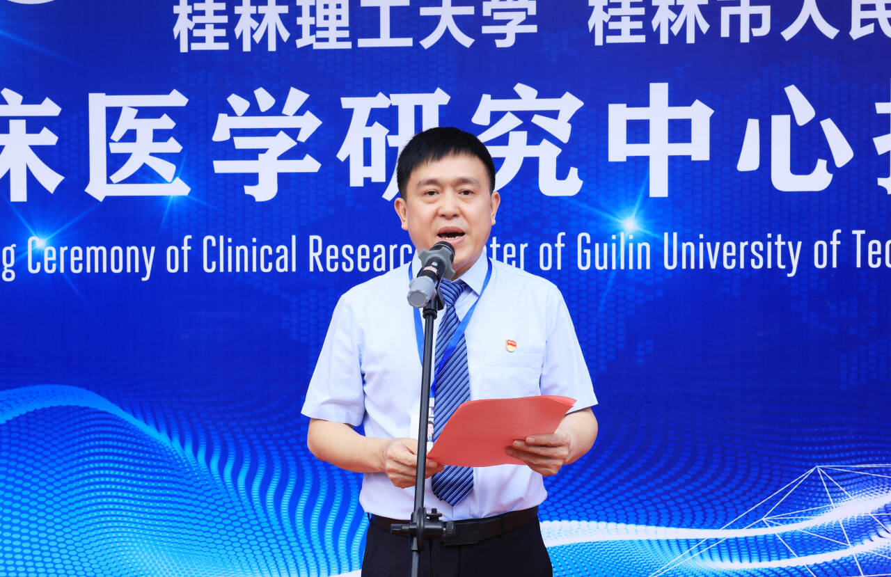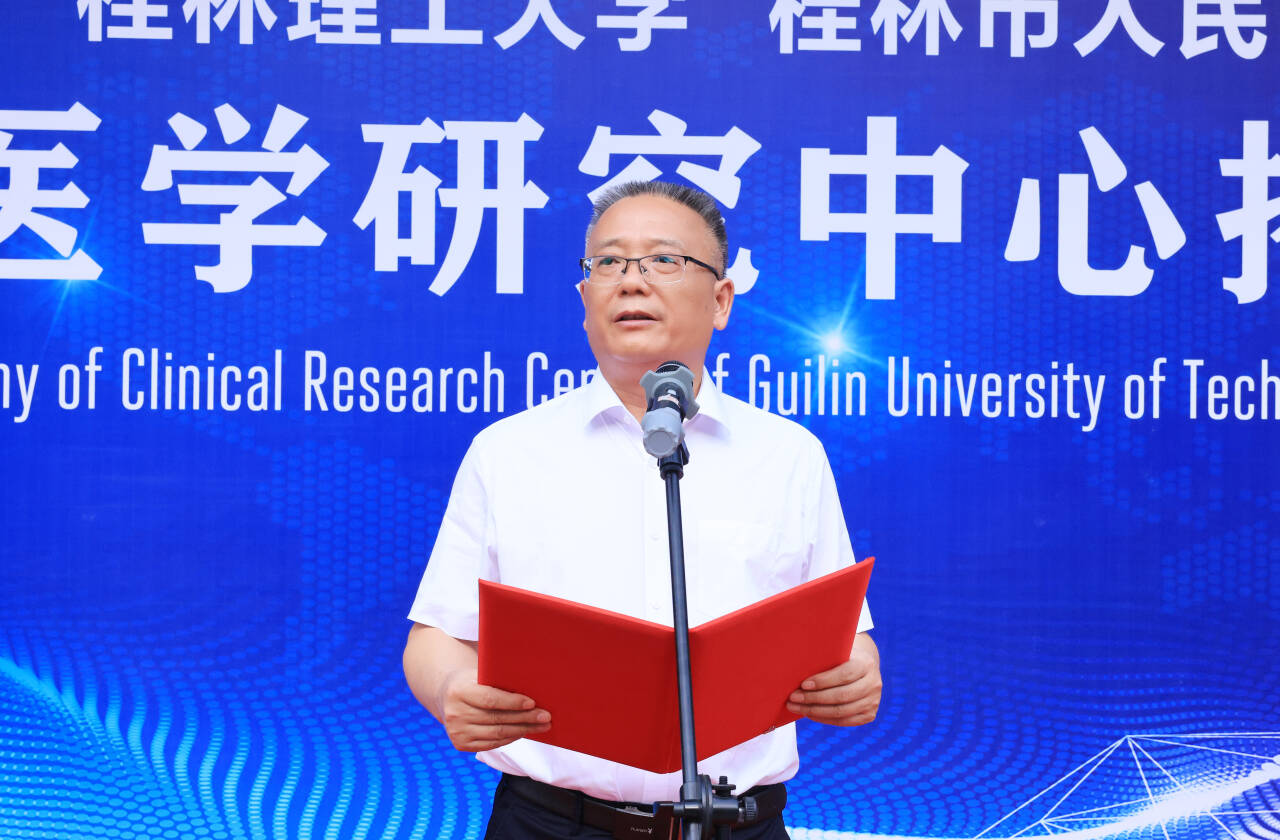 王敦球向beat365官方网站-桂林市人民医院临床医学研究中心的揭牌表示热烈祝贺,向长期以来关心支持学校建设发展的桂林市卫健委、桂林市人民医院表示衷心感谢。他表示,学校将秉承“融合互补、共谋发展、互利双赢”的原则,进一步增强与市人民医院的合作,共同探索前沿疾病诊疗技术研发与应用、科技成果转化、创新人才培养和产学研一体化建设的新模式,为学校和医院的高质量发展注入新的动能,以新质生产力为桂林市经济社会发展作出新的更大贡献。
