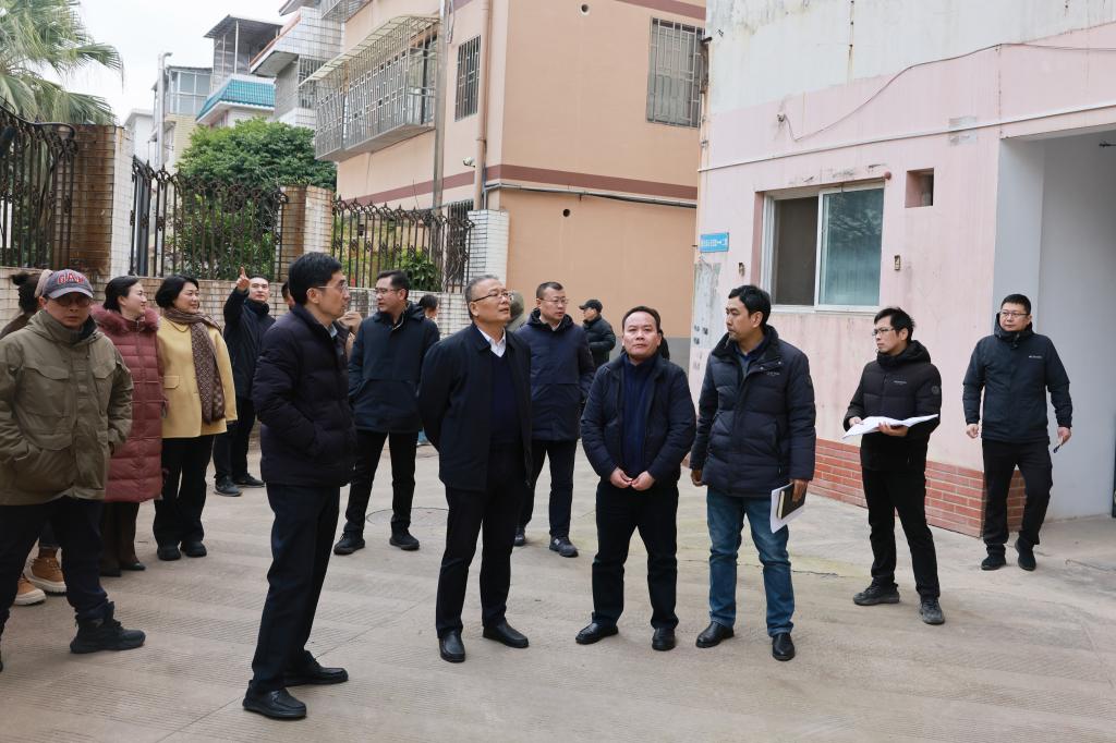 王敦球一行分别实地查看了屏风东城小区配套综合楼、青年教师公寓、留学生公寓,认真听取了相关部门的工作汇报,详细了解了项目的改造方案等具体情况,并现场办公协调解决工作中存在的难点和瓶颈问题。