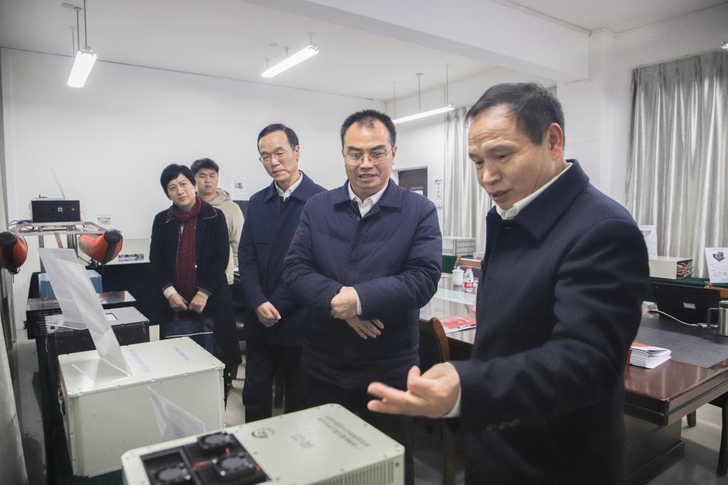 自治区科技厅副厅长李克纯(右二)参观广西测绘激光雷达智能装备科技成果转化中试研究基地