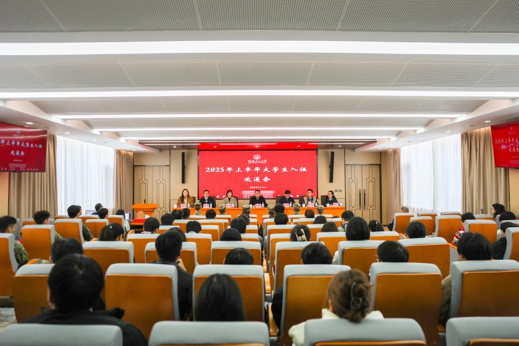 3月13日上午,beat365在雁山校区行知楼B406会议室举行2025年上半年大学生应征入伍欢送会。学校党委常委、副校长罗盛锋出席会议。武装部、学工部(处)、研工部、本科生院、财务处、校医院相关负责人,以及辅导员代表、入伍学生、家长代表参加会议。