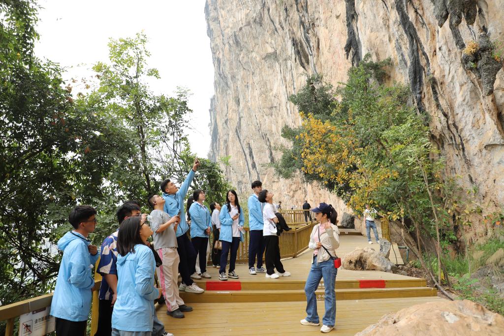 在宁明县,两校师生参观中国首个岩画类世界文化遗产、广西首个世界遗产——左江花山岩画文化景观,共同“探秘”穿越千年的古骆越文明,感受厚重的历史文化底蕴、秀美的自然风光和多彩的民族风情。