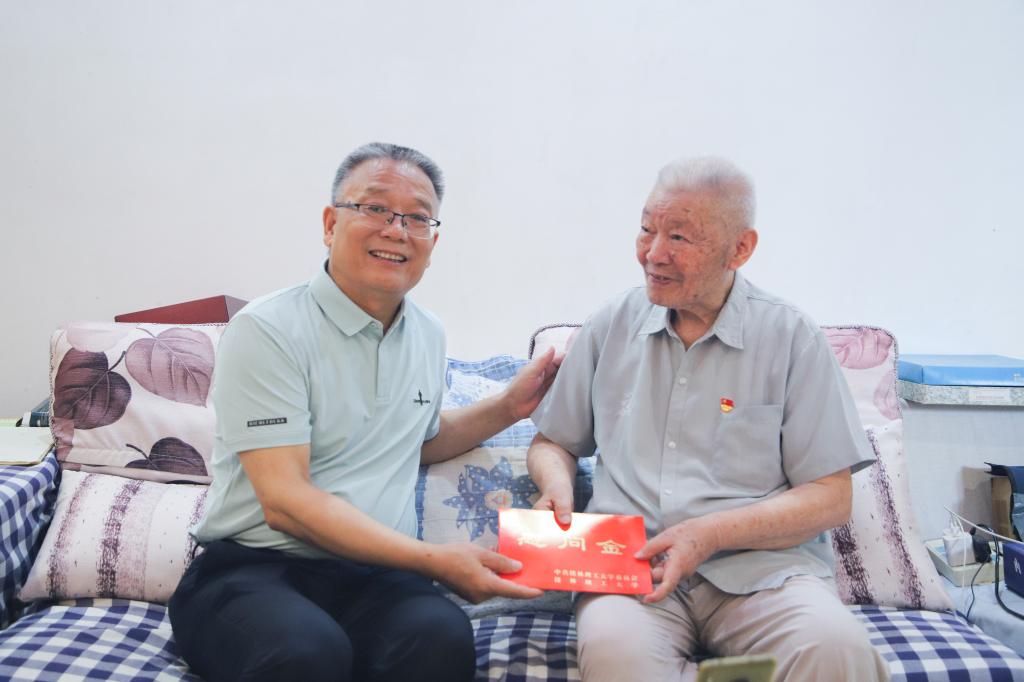 在走访慰问优秀共产党员时,校领导对他们立足本职、勇担使命,为学校各项事业发展作出的努力和贡献表示肯定和感谢,勉励他们继续发挥模范带头作用,在服务教育强国建设中争当先锋,为推动学校高质量发展、培养担当民族复兴大任的时代新人作出新的更大贡献。在慰问离退休老党员时,校领导详细询问他们身体和生活情况,感谢他们为学校事业发展作出的贡献,希望他们保重身体、发挥余热,一如既往地关心和支持学校发展,为学校高质量发展建言献策。在慰问生活困难党员时,校领导深入了解他们的实际困难和生活需求,认真倾听他们的所需所盼,勉励他们要以积极向上的心态面对生活挑战,并叮嘱他们要注意保重身体。