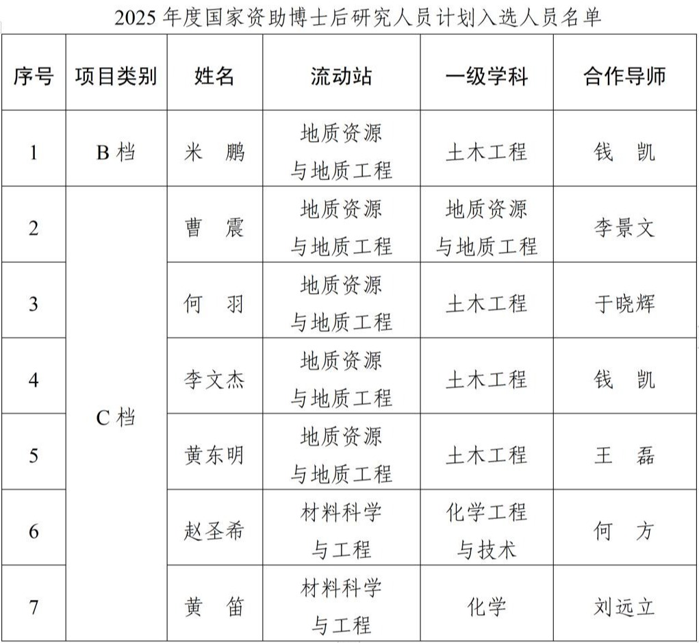 近日,中国博士后科学基金会公布了2025年度国家资助博士后研究人员计划(B档、C档)获选人员名单。beat3657位博士后成功入选,其中B档1人,C档6人,为全区入选人数最多的高校。