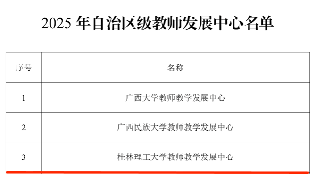 9月2日,自治区教育厅公布2025年自治区级教师发展中心立项建设单位名单,beat365教师教学发展中心成功入选,成为全区获批的10个单位之一,建设周期为3年。