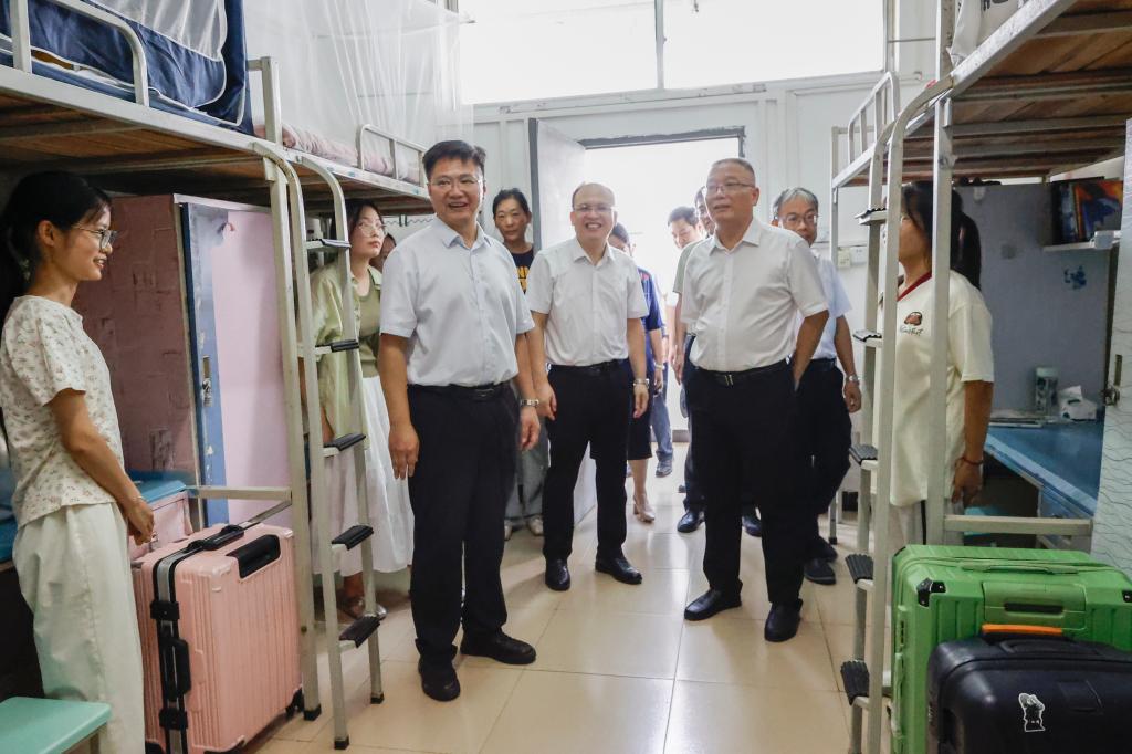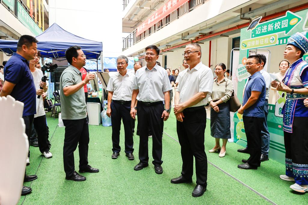 9月7日,学校党委书记农毅,党委副书记、校长王敦球,党委副书记黎贞崇,党委常委、副校长王磊,党委常委、副校长唐壮东,党委常委、总会计师曾繁荣等赴雁山校区,深入迎新一线检查指导工作,亲切看望新生,并慰问辛勤服务的工作人员。校长助理张成龙及相关职能部门负责人陪同检查。