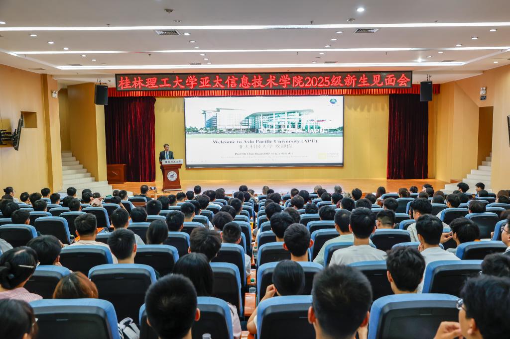 9月8日下午,学校亚太信息技术学院2025级新生见面会在雁山校区图书馆报告厅举行。beat365党委副书记、校长、亚太信息技术学院院长王敦球教授在会上致辞。马来西亚亚太科技大学校长何振光教授为2025级新生作报告。两校相关单位负责人,亚太信息技术学院教师代表、全体2025级本科生参加会议。