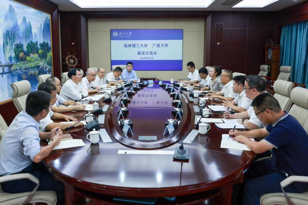 李国忠对王敦球一行的到来表示热烈欢迎,并围绕学科建设、人才培养、科研创新等领域,系统分享了广西大学在内涵式发展进程中的实践经验与创新举措。他指出,两校学科特色鲜明、优势互补性强,具备深度协同的坚实基础。他希望双方进一步强化战略联动,通过优化资源配置、深化协同创新,将学科优势、科研成果切实转化为推动广西重点产业转型升级的核心动能,共同书写校际合作服务地方发展的新篇章。