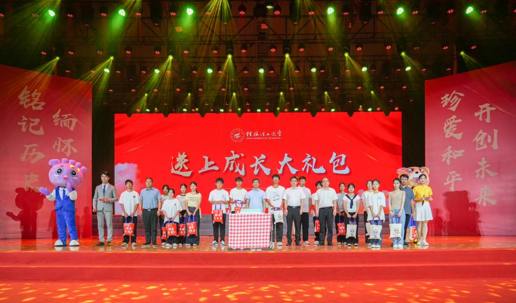 歌会还设置了为与祖国母亲同一天生日的16位新生庆生环节,校领导为新生代表送上生日祝福和成长礼包。