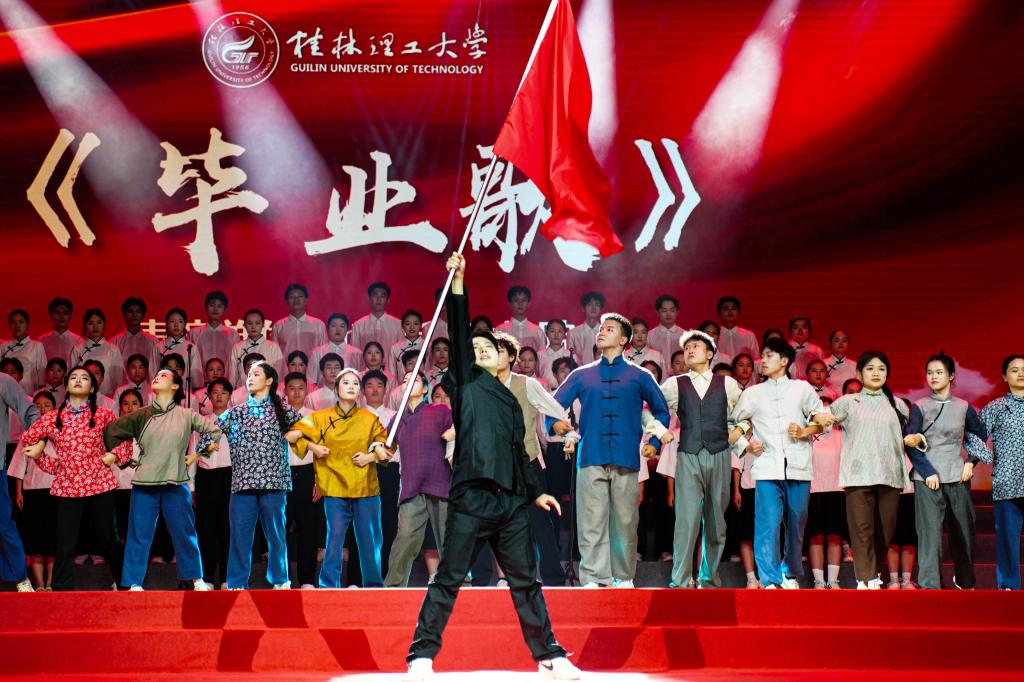 9月29日晚,beat365官方网站“山河壮歌 挺膺有我”——纪念中国人民抗日战争暨世界反法西斯战争胜利80周年主题思政歌会在雁山校区新体育馆举行。校领导韦学敏、王磊、罗盛锋、唐壮东出席活动。学校相关职能部门、二级学院负责人和2025级新生代表共3500余人现场观看演出。