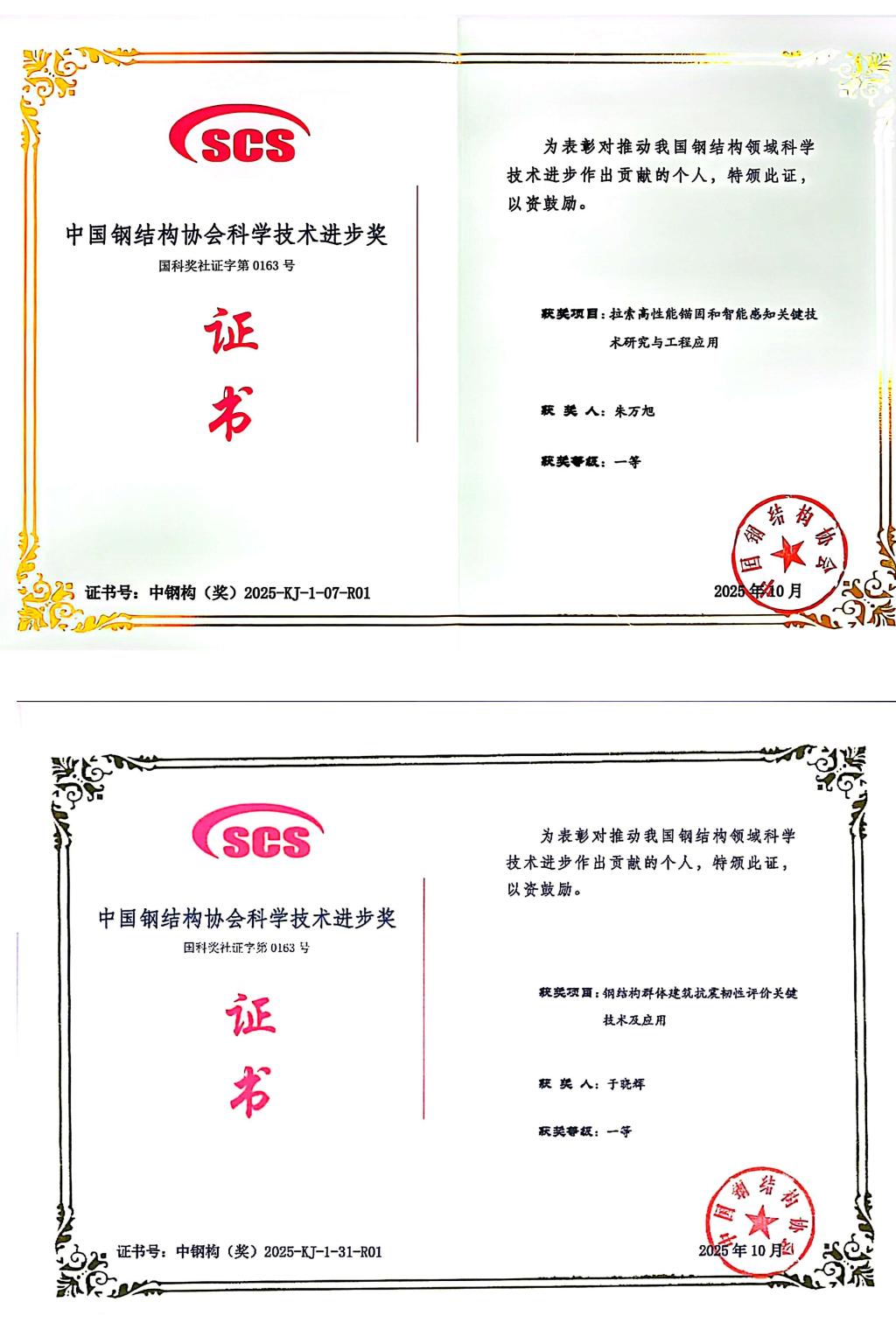 朱万旭教授、于晓辉教授团队研究成果获2025年度中国钢结构协会科技进步一等奖