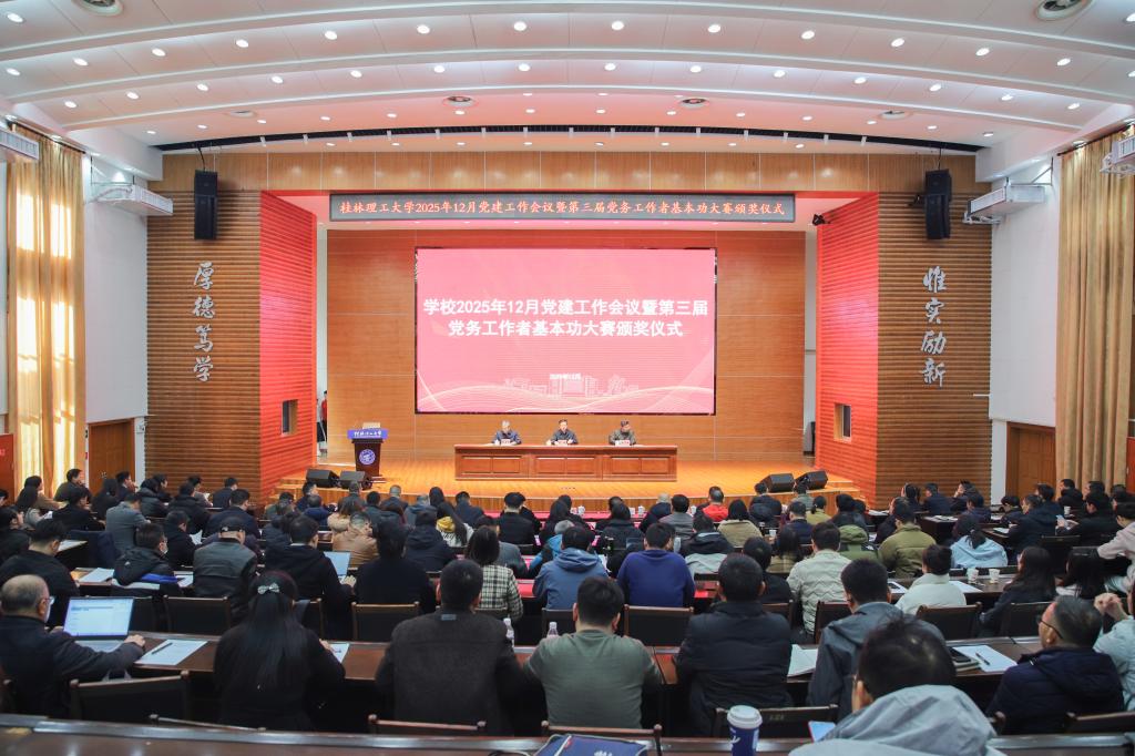 12月25日下午,学校在屏风校区图书馆报告厅举行2025年12月党建工作会议暨第三届党务工作者基本功大赛颁奖仪式,深入学习贯彻习近平新时代中国特色社会主义思想和党的二十届四中全会精神,全面落实习近平总书记关于党的建设的重要思想和关于教育的重要论述,进一步推动落实学校基层党建“十个一”要求、“五基三化”巩固年行动,切实提升学校党务工作者履职能力和工作水平,为引领学校事业高质量发展提供坚强保证。