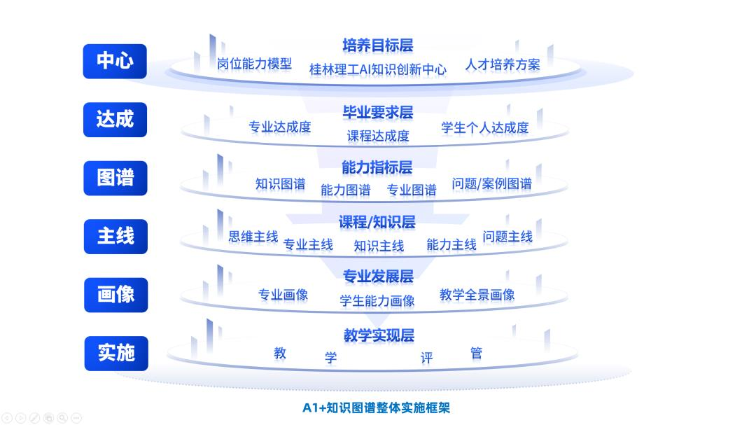 课程是教学改革的核心。学校开发了多模态大模型驱动的知识图谱AI课程平台,以生成式AI为基础,整合AI知识图谱、AI助教、AI测验、AI评阅、AI视频与AI实践六大模块,构建“Anyone、Anytime、Anywhere”的“3A”教学新范式。该平台创新性地利用提示词工程,通过动态调整提示策略,引导大模型高效生成符合最新要求与知识进展的课程内容,实现低成本、高频率的课程内容敏捷迭代。课程知识图谱构建时效缩短到30分钟以内,单个课件AI讲解视频生成缩短到10分钟内,11维AI评阅系统使实验报告批改效率提升10倍。