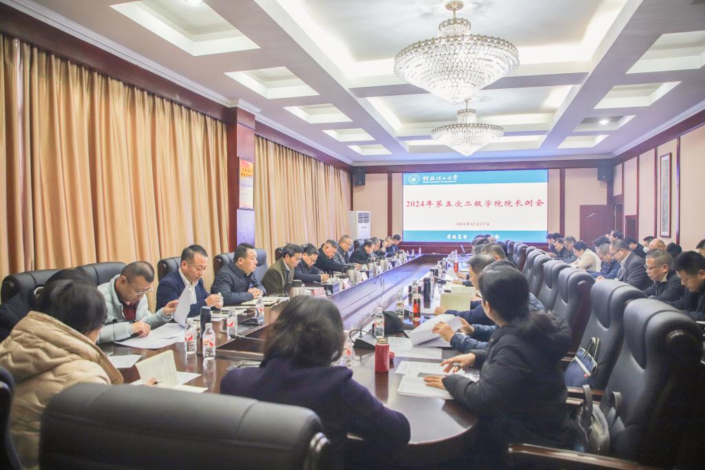 为加强有组织科研,全面提升学校服务地方社会经济高质量发展能力,12月27日上午,学校在屏风校区教八楼三楼会议室召开2024年第五次二级学院院长例会。校领导邓军、王敦球、吴志强、周国清、韦学敏、黎贞崇、罗盛锋出席会议,党办校办法务办、组织部、人事处、发规处、本科生院、研究生院、科研院、财务处、资产处主要负责人及各二级学院党委书记、院长参加会议。会议由学校党委常委、副校长黎贞崇主持。