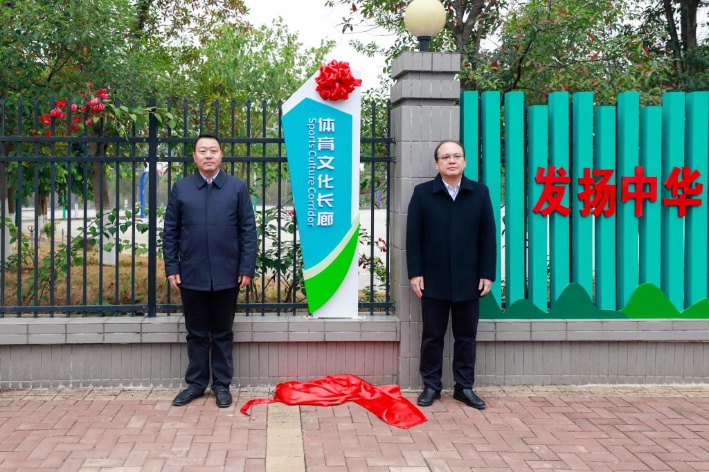 学校党委常委、副校长罗盛锋,党委常委、副校长、组织部部长唐壮东为体育文化长廊揭牌