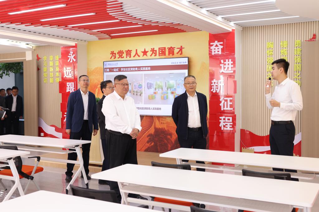随后,邓军书记、王敦球校长共同为“一站式”学生社区(三期)揭牌,并参观“一站式”学生社区(三期)的相关功能区。