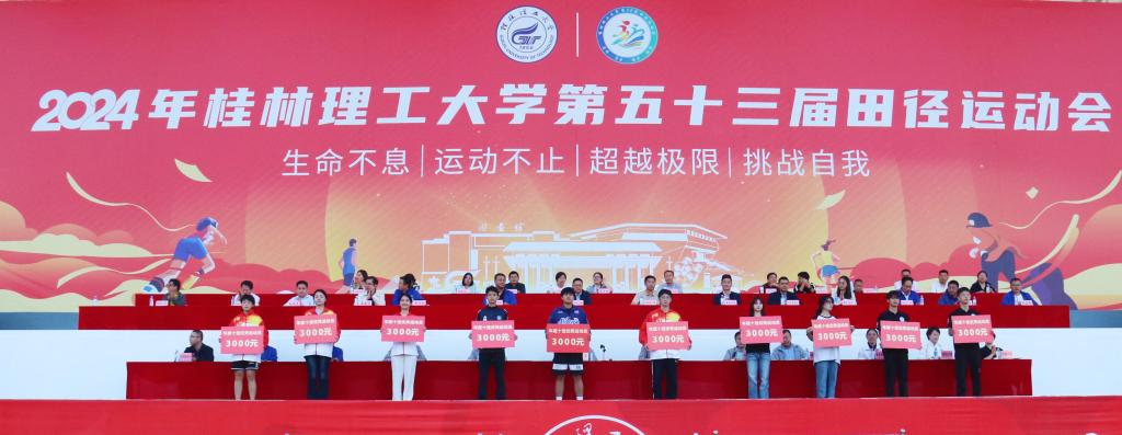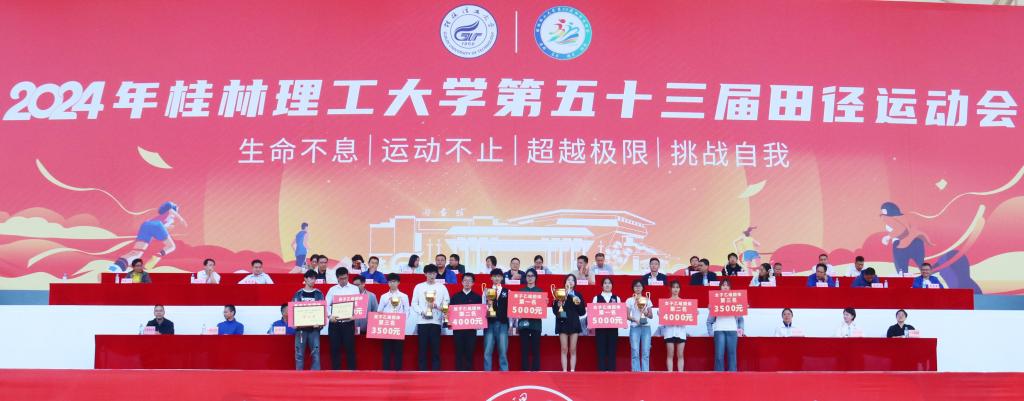 今年的赛事中,共有4000余名体育健儿参加了30个项目的比赛,各项比赛井井有条、激烈精彩。整个运动场上始终洋溢着竞争、拼搏、团结、友爱的美好气氛。运动会整体内容丰富,秩序井然,热烈高效,成绩喜人。闭幕式上,本次运动会总裁判长、体育教学部主任陈方煜宣布了校运会比赛成绩。计算机学院、地球学院、材料学院、公管学院、外语学院、旅游学院荣获精神文明奖;土木学院、商学院、南宁分校、环境学院、化生学院、机控学院荣获优秀组织奖;联合一分工会、附小分工会、地球学院分工会、土木学院分工会、后勤分工会荣获教职工团体一等奖前五名;南宁分校、商学院、外语学院、土木学院、化生学院、旅游学院荣获女子甲组团体总分前六名;地球学院、土木学院、商学院、物电学院、计算机学院、公管学院荣获女子乙组团体总分前六名;南宁分校、土木学院、化生学院、商学院、机控学院、环境学院荣获男子甲组团体总分前六名;土木学院、材料学院、计算机学院、环境学院、机控学院、继教院荣获男子乙组团体总分前六名;土木学院、地球学院、商学院、测绘学院、材料学院、机控学院荣获2024年度运动会团体总分前六名;李锋、覃安、陈辉、谢纪军、唐俊杰、龚俊辉等6名教师荣获2024年度“优秀教练员”;商学院刘永逸、土木学院黄晓镔、材料学院韦雅琪、测绘学院黄蓓蓓、地球学院王山、化生学院王思睿、土木学院李鑫、计算机学院魏炬华、材料学院范霄萌、艺术学院李杺满等10名同学荣获2024年度“十佳运动员”称号。