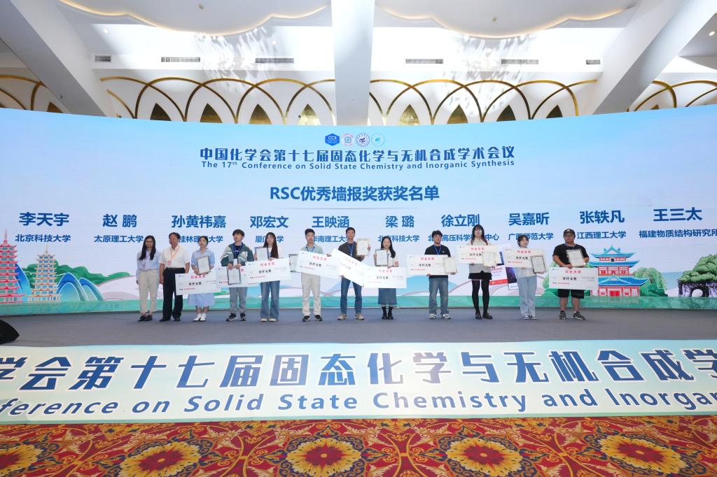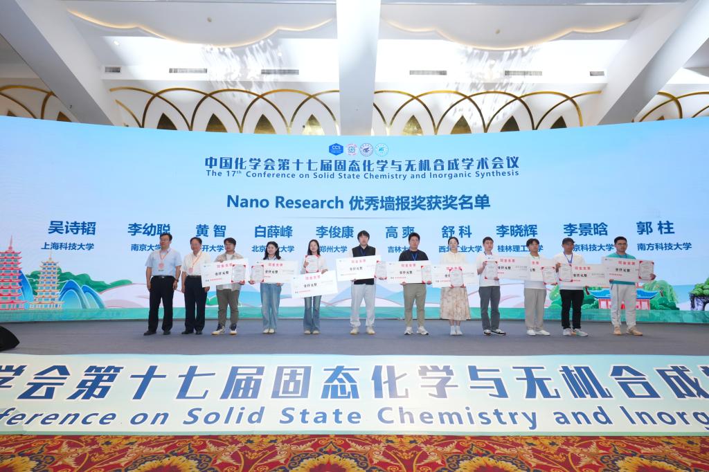 会议开幕式期间,颁发了中国化学会庞徐无机合成化学新秀奖、中国化学会无机化学纳米研究奖。闭幕式期间,颁发了RSC期刊和Nano Research期刊的优秀墙报奖。