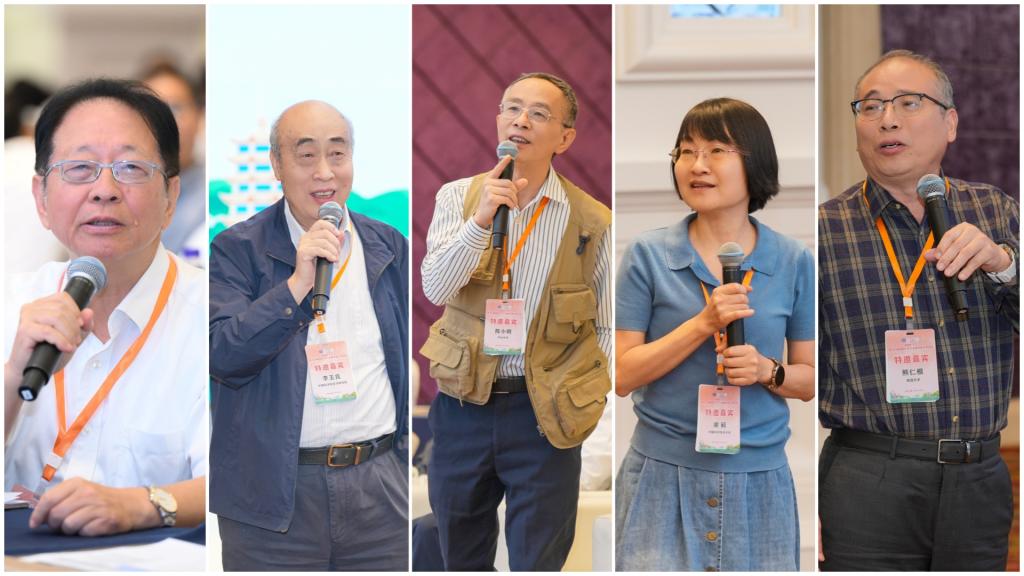 郑兰荪院士(左一)、李玉良院士(左二)、陈小明院士(中)、谢毅院士(右二)、熊仁根院士(右一)担任大会报告主持人