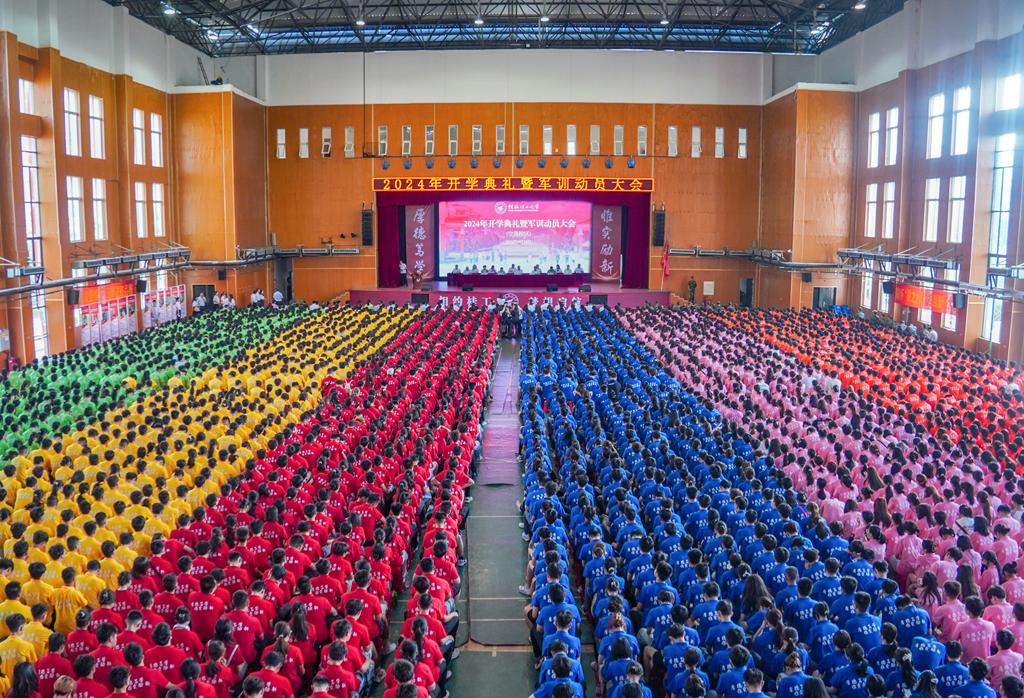 最好新秋时,万千气象新。9月14日上午,南宁分校在空港校区体育馆举行2024年新生开学典礼暨军训动员大会。学校党委副书记、校长王敦球,学校党委常委、副校长黎贞崇,扶绥县副县长黄芳妮,扶绥县人民武装部副部长马璐璐,学校校长助理、研究生院院长、学科建设办公室常务副主任,南宁分校党委副书记、校长张树光出席典礼。学校校友与国内合作处负责人,南宁分校领导班子成员,相关部门、学院党政负责人,新生辅导员、班主任,教师代表,全体2024级新生参加典礼。典礼通过线上全程同步直播。