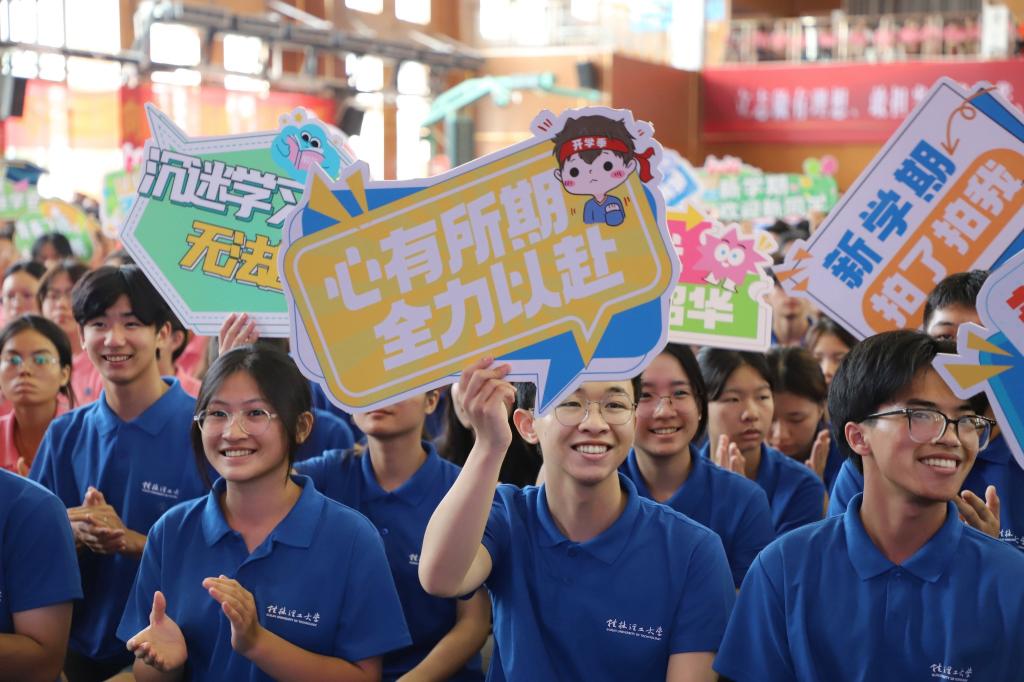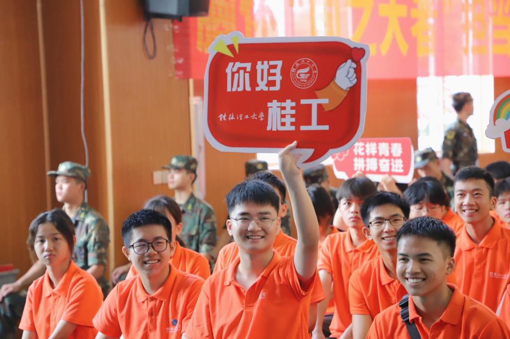 王敦球在典礼上讲话。他代表学校向全体远道而来、朝气蓬勃的“新桂工人”表示热烈的欢迎,并提出三点希望:一是树立远大志向,厚植家国情怀。树牢报国大志、勇担复兴大任,心想“国家事”、肩扛“国家责”,将当下所学对准未来所需,为强国建设、民族复兴汇聚力量。二是坚持知行合一,练就过硬本领。要深刻领悟科学之真谛、工程之精妙、人文之善美、艺术之魅力,努力做到知行合一、以知促行、以行求知,让所学成为解决现实问题的过硬本领。三是勇于创新探索,矢志砥砺奋斗。要学会独立思考、敢于探索求新、勇攀科学高峰,勇敢地走出“舒适区”,闯进“挑战区”,挺进“无人区”,不断拼搏奋斗,努力成长为德智体美劳全面发展的社会主义建设者和接班人。