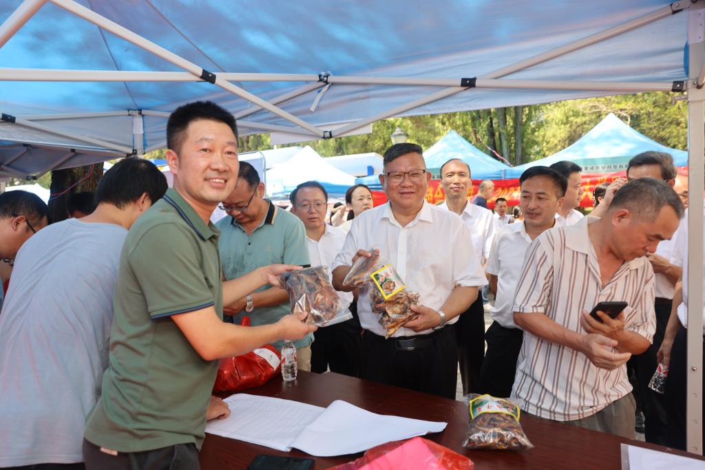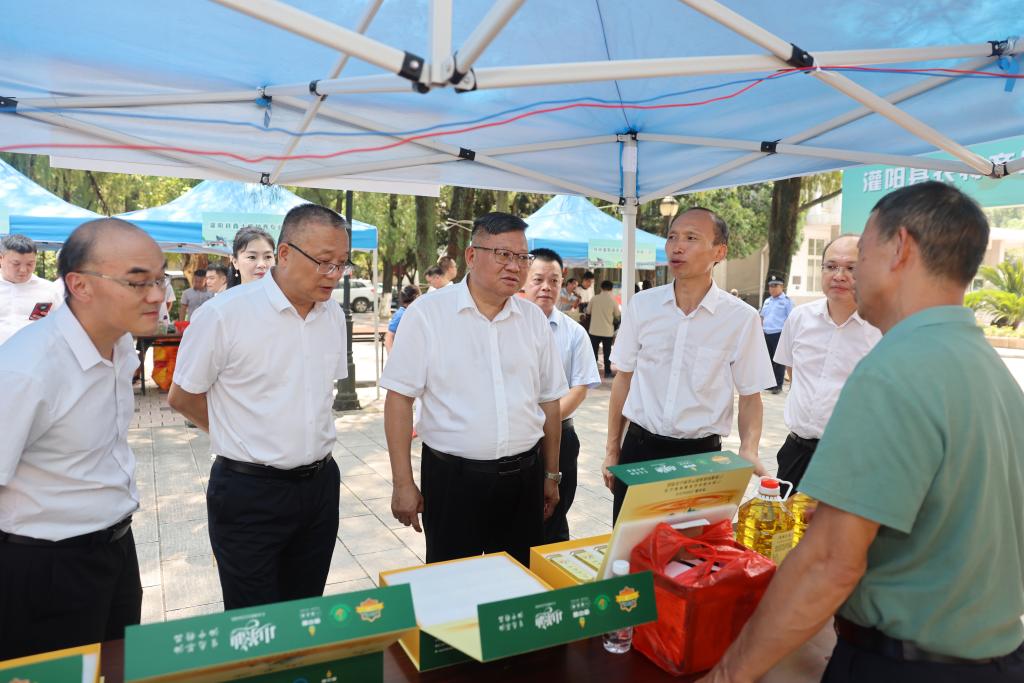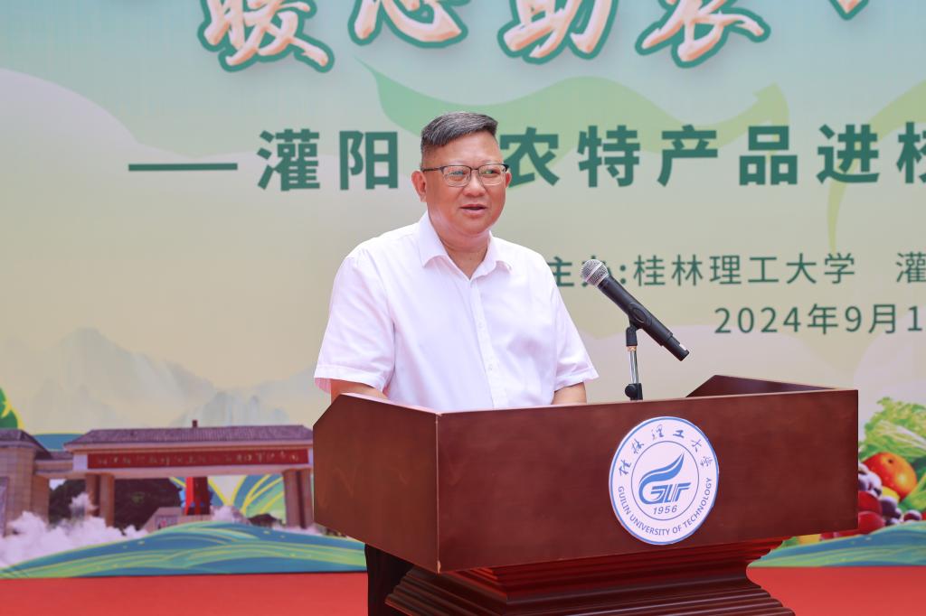学校党委书记邓军在出席展销活动时指出,持续巩固拓展脱贫攻坚成果同乡村振兴有效衔接是党中央做出的重大决策部署,开展定点帮扶、助力乡村振兴,是学校服务国家战略、助力区域发展的光荣使命。多年来,学校坚持把接续做好乡村振兴工作作为践行教育社会服务功能,深化立德树人大课堂的有效途径,不断发挥教育、科技、人才优势,深入实施“四大帮扶”行动和“五个一百”帮扶计划,为推进乡村振兴做出了积极贡献。本次展销活动是学校充分利用自身优势资源,为灌阳县农产品拓宽销售渠道,帮助低收入群众增收的务实举措。希望学校各单位、各部门深入开展有组织的宣传和认购活动,以实际行动支持消费帮扶工作,为助力群众增收致富、推进乡村全面振兴贡献自身力量。