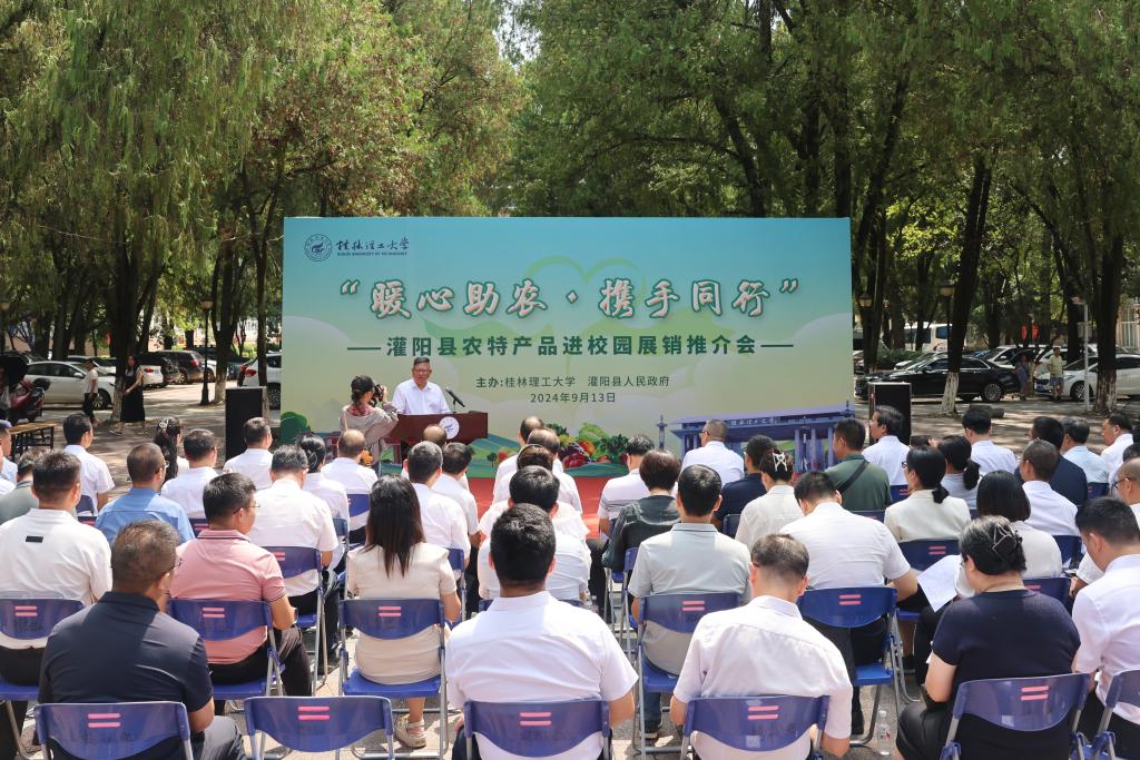 为深入贯彻落实习近平总书记关于“三农”工作重要论述,组织引导广大师生员工积极参与消费帮扶,助力定点帮扶灌阳县持续巩固拓展脱贫攻坚成果同乡村振兴有效衔接,9月13日,学校在屏风校区组织开展“暖心助农、携手同行”灌阳县农特产品进校园展销活动,校领导邓军、王敦球、吴志强、韦学敏、王磊、黎贞崇、罗盛锋出席活动并带头购买农特产品。