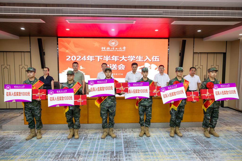 9月13日下午,beat365在雁山校区行知楼B406会议室举行2024年下半年大学生入伍欢送会。学校党委常委、副校长罗盛锋出席活动,党办校办、武装部、学工部(处)、本科生院、财务处、校医院主要负责人,相关学院分管学生工作党委副书记、辅导员,入伍学生及家长代表参加会议。