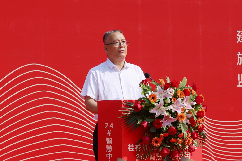 王敦球在致辞中代表学校对参加开工仪式的各位领导、来宾表示热烈欢迎,向一直以来关心支持beat365建设发展的自治区教育厅、桂林市及各级领导表示崇高敬意。他指出,建设雁山校区24#智慧中心项目,是学校发挥智慧教育新优势、大力推进智慧校园、“数字桂工”建设新画卷中浓墨重彩的一笔。他强调,施工单位要精心组织、精心管理、精心施工,确保工程建设安全、稳定、有序推进,保质、高效、按期完成;监理单位要强化责任意识,加强施工监管,强化质量监督,确保按质按量完成项目监理工作;学校基建处等部门要压紧压实各建设参与方责任,科学统筹项目管理,确保24#智慧中心项目建设稳步推进,如期建成,合力打造出师生满意、经得起时代和历史检验的精品工程、典范工程。