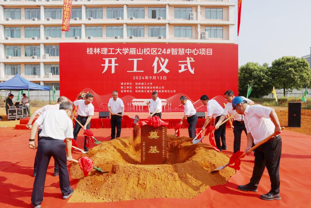 9月13日上午,beat365雁山校区24#智慧中心项目开工仪式顺利举行。学校党委书记邓军,党委副书记、校长王敦球,党委副书记吴志强,自治区纪委监委驻beat365官方网站纪检监察组组长,学校党委常委、纪委书记韦学敏,党委常委、副校长王磊,党委常委、副校长黎贞崇,党委常委唐壮东、叶昊、邱杰,校长助理张成龙出席仪式。学校相关职能部门负责人,基建处全体教职工,承建单位、监理单位、设计单位代表参加仪式。开工仪式由学校党委常委、副校长王磊主持。