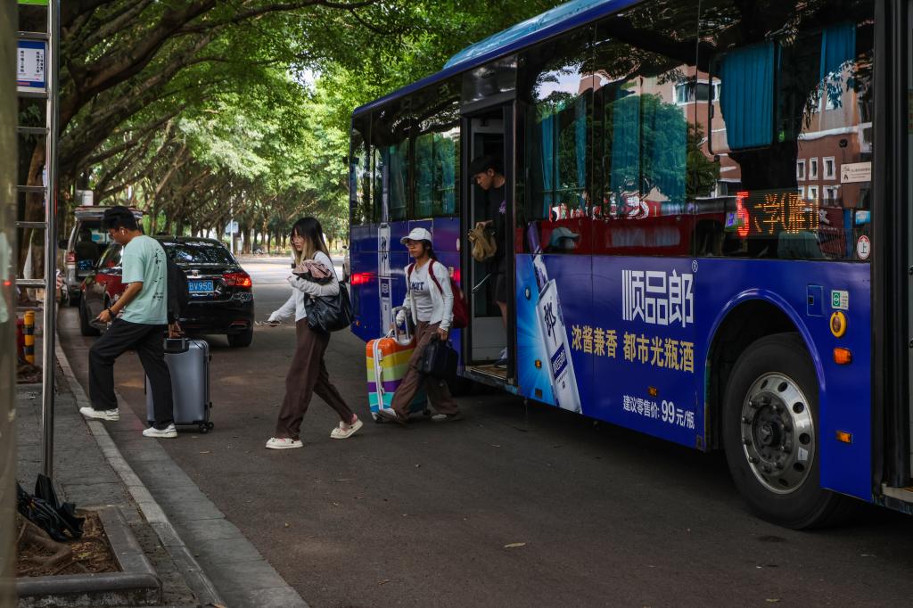 “定制公交”“舱门到校门专线”“5路公交车”满载学生返校