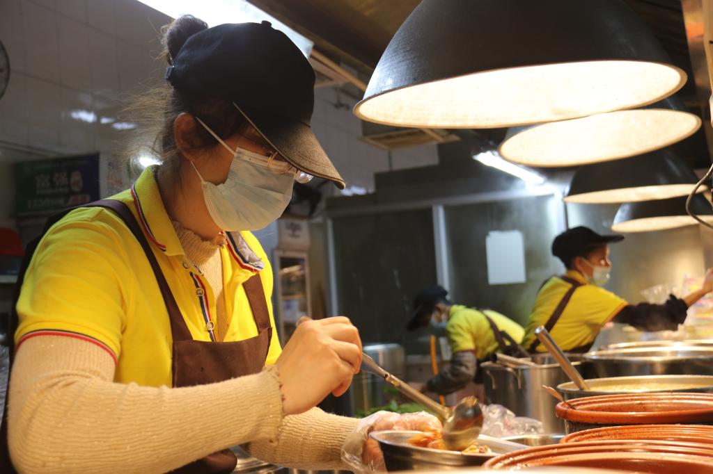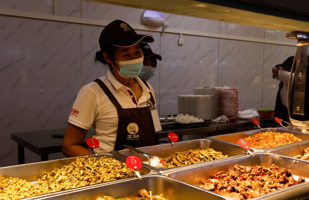 食堂阿姨在热情打饭