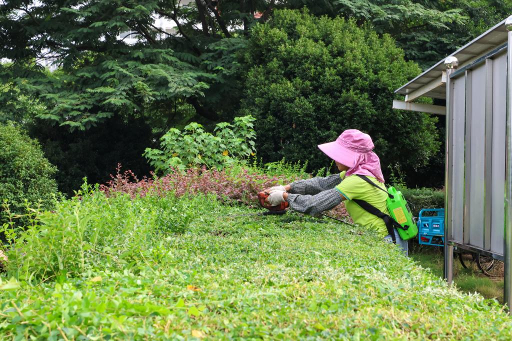 后勤工作人员开展校园环境清洁