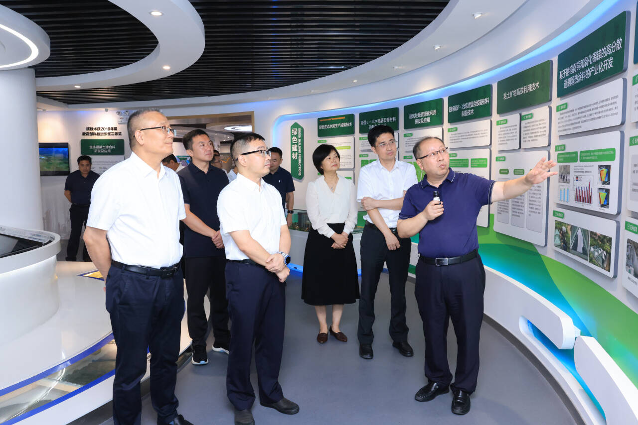 会前,王敦球陪同徐华蕊、苗剑一行参观了广西工业废渣建材资源利用工程技术研究中心、广西光电材料与器件重点实验室。