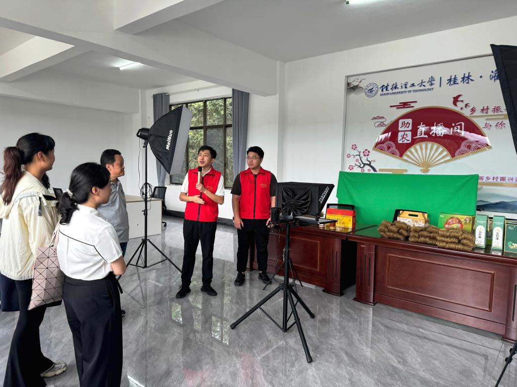 曾繁荣一行深入灌阳县顺溪村和东阳村察看村容村貌,实地调研顺溪村速食油茶加工项目、东阳村乡村振兴人才培训与名特优产品服务中心及助农直播间,并与黄关镇负责人就农特产品品牌打造、产品营销等共建项目开展了座谈交流。曾繁荣就进一步助力灌阳县乡村振兴工作提出要求:要提高政治站位,深入学习贯彻落实习近平总书记关于“三农”工作的重要论述和关于广西工作论述的重要要求;要按照党中央、自治区党委关于乡村振兴工作重大决策部署,持续发力、久久为功,全面推进乡村振兴;要充分挖掘当地资源优势,高站位谋划,探索新型产业项目,为乡村振兴提供商科智慧。