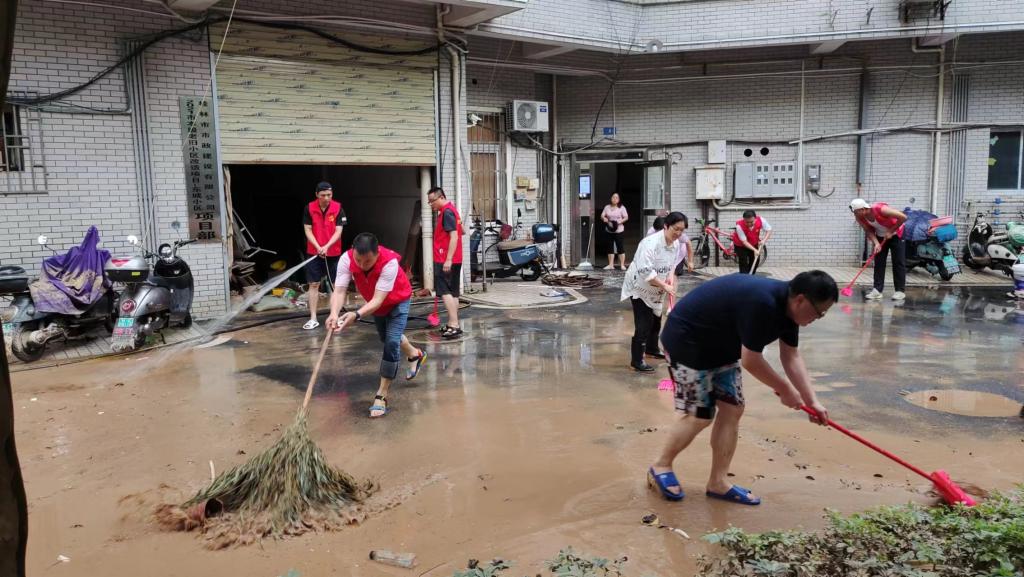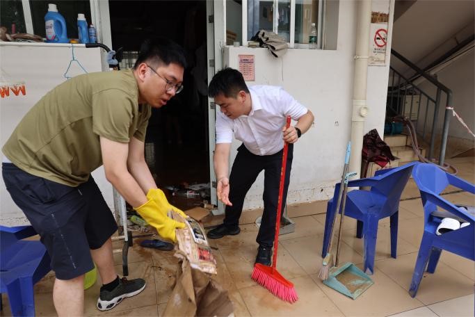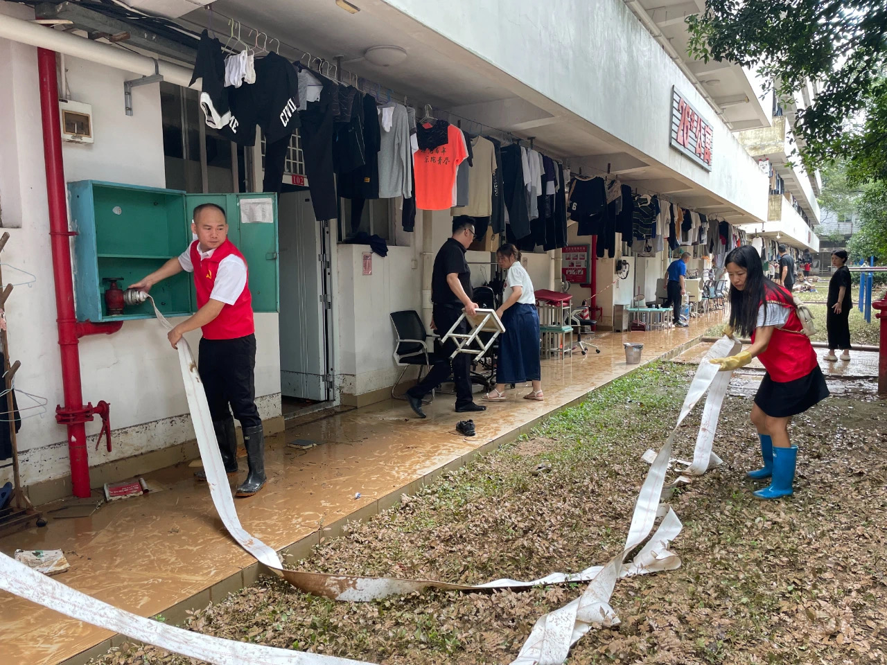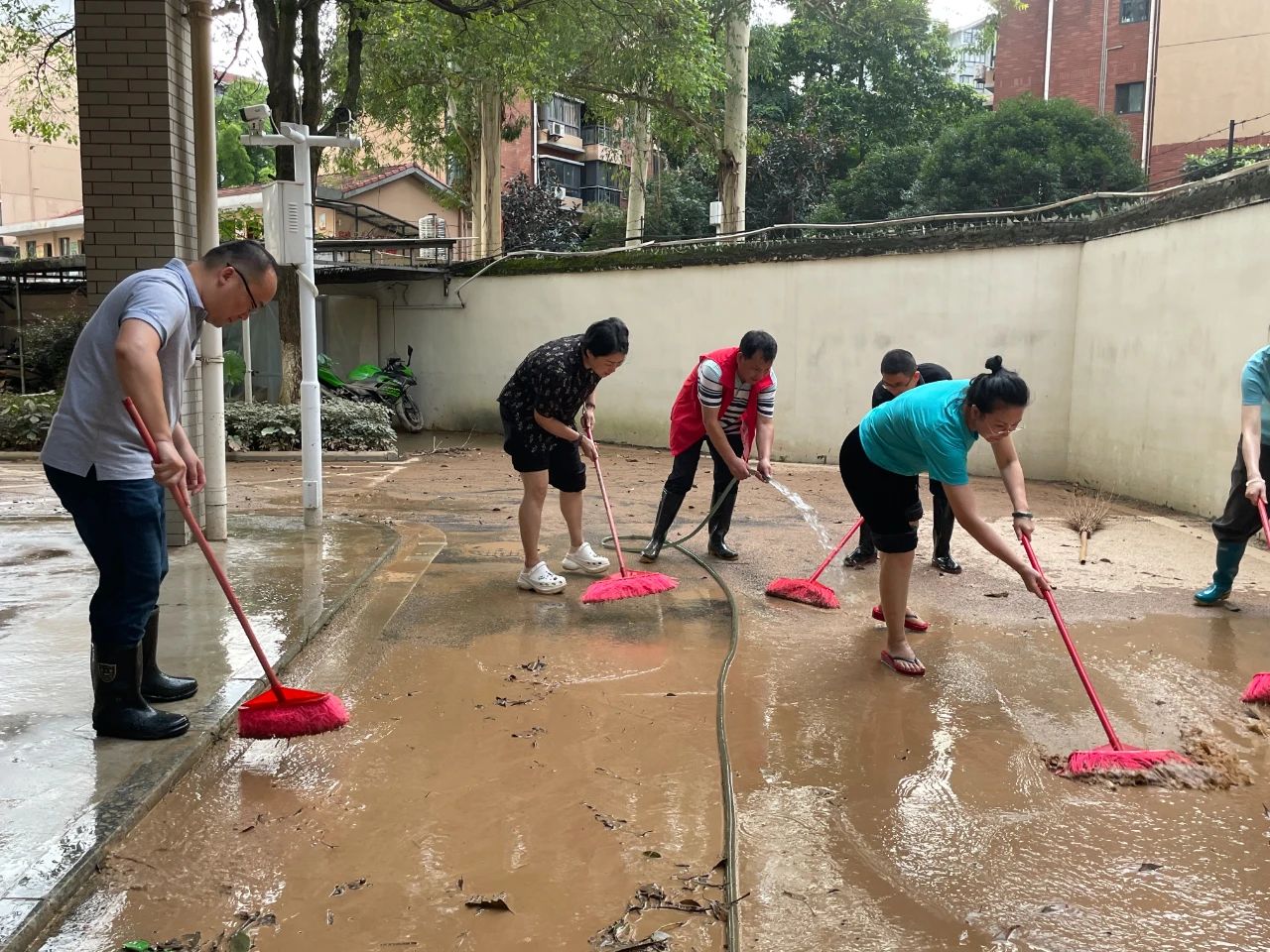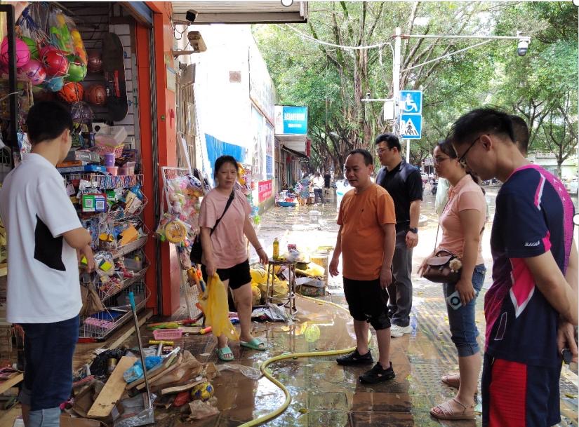 在建干路,学校部分门面租户也是洪水受灾区。资产部门党员干部第一时间来到现场,了解租户受灾情况,协助开展清淤和垃圾清理等。
