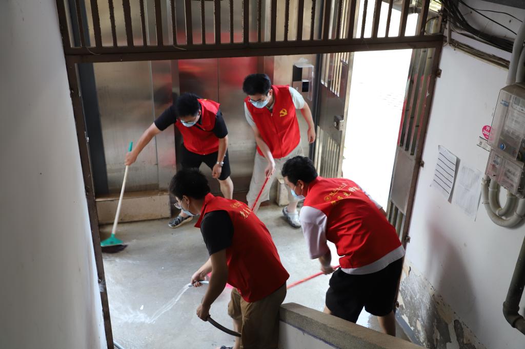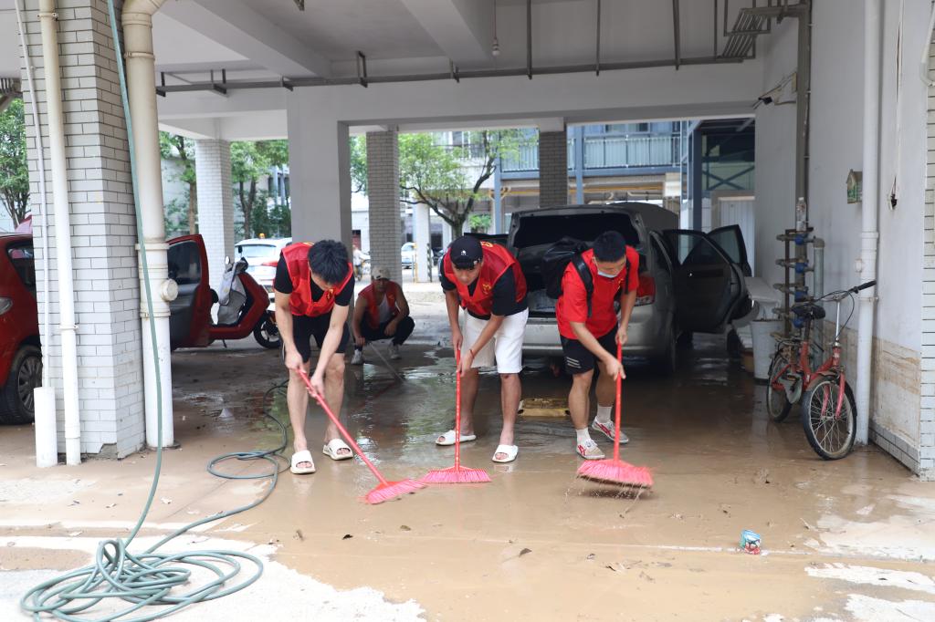 洪水退去之后,受灾区域满地淤泥,遍地垃圾,为师生生活带来严重影响。机关党委第一时间发出号召,组织党员志愿者奔赴灾区开展清淤、消杀等工作。