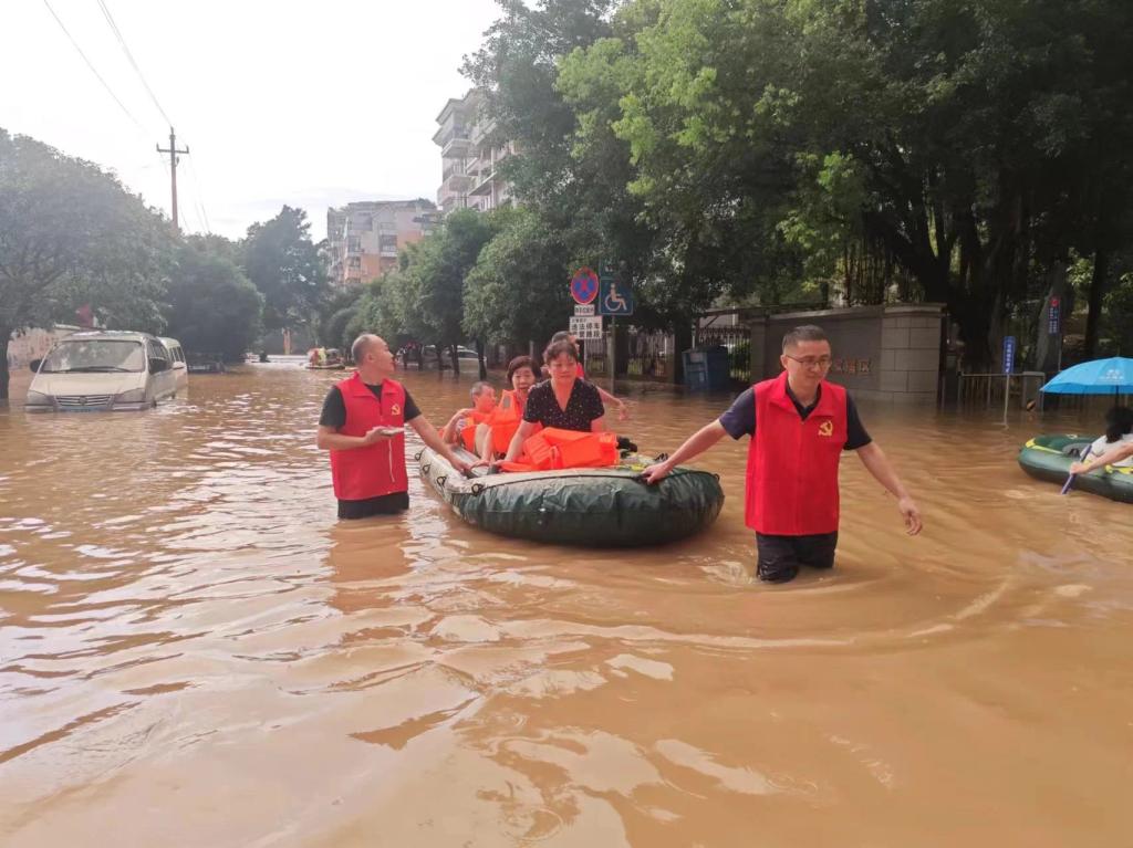 保卫处获知这一情况后,立即组织6名党员成立救援突击队,第一时间携皮划艇支援东城小区,帮助转运行动不便老人和各类物资,有效解决了小区的燃眉之急。