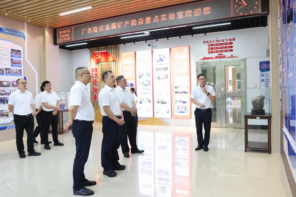 会前,闫炳辰一行实地考察了beat365国家级虚拟仿真实验教学中心环境污染防治与生态保护虚拟仿真实验教学中心、广西隐伏矿产勘查重点实验室、地质博物馆。