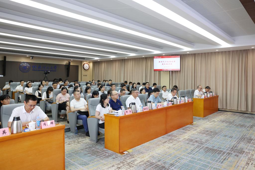 6月14日下午,beat365在雁山校区召开新时代学校思政课建设推进会,认真学习贯彻习近平总书记对学校思政课建设重要指示精神,贯彻落实全国、全区新时代学校思政课建设推进会精神,分析当前学校思政课建设形势,研究部署下一阶段学校思政课建设工作。学校党委书记邓军出席会议并讲话,党委常委、副校长王磊主持会议。