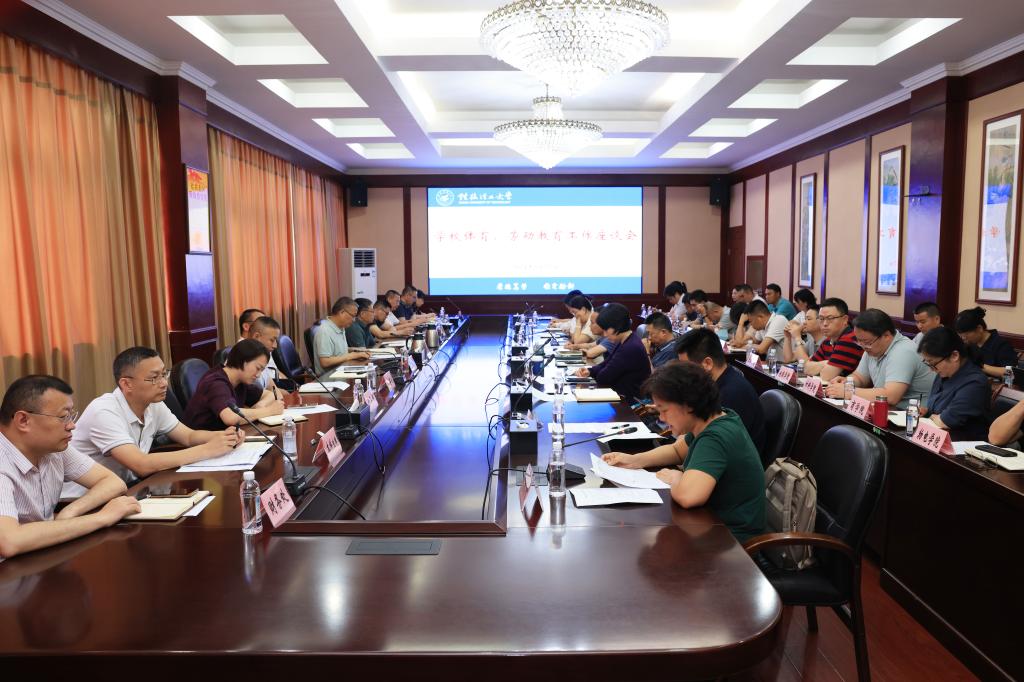 为进一步做好新时代学校体育、劳动教育工作,5月27日上午,学校在屏风校区教八楼三楼会议室召开体育、劳动教育工作座谈会。校党委副书记、校长王敦球,党委副书记吴志强出席会议。校长助理、党办校办法务办主任张成龙,宣传部、人事处、学工部(处)、研工部、发规处、本科生院、研究生院、财务处、资产处、校工会、团委、后勤、继续教育学院、国际教育学院、体育教学部以及二级学院相关负责人参会。