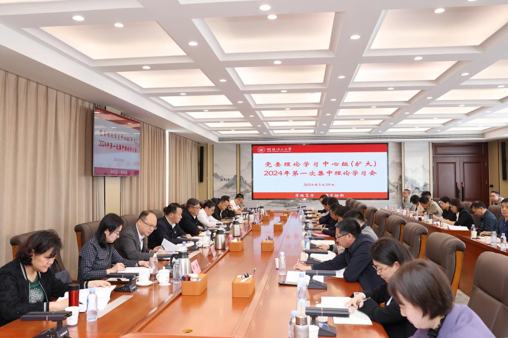 3月29日,学校在雁山校区行知楼A406会议室举行党委理论学习中心组(扩大)2024年第一次集中理论学习会,深入学习宣传贯彻习近平总书记对广西重大方略要求、习近平总书记在中共中央政治局第十一次集体学习时关于加快发展新质生产力、扎实推进高质量发展时的重要讲话精神、习近平总书记在全国两会期间的重要讲话和全国两会精神、习近平总书记在湖南考察时的重要讲话精神,坚持学思用贯通、知信行统一,引领全校师生凝心聚力、乘势而上,推动高水平理工大学建设迈出新步伐。
