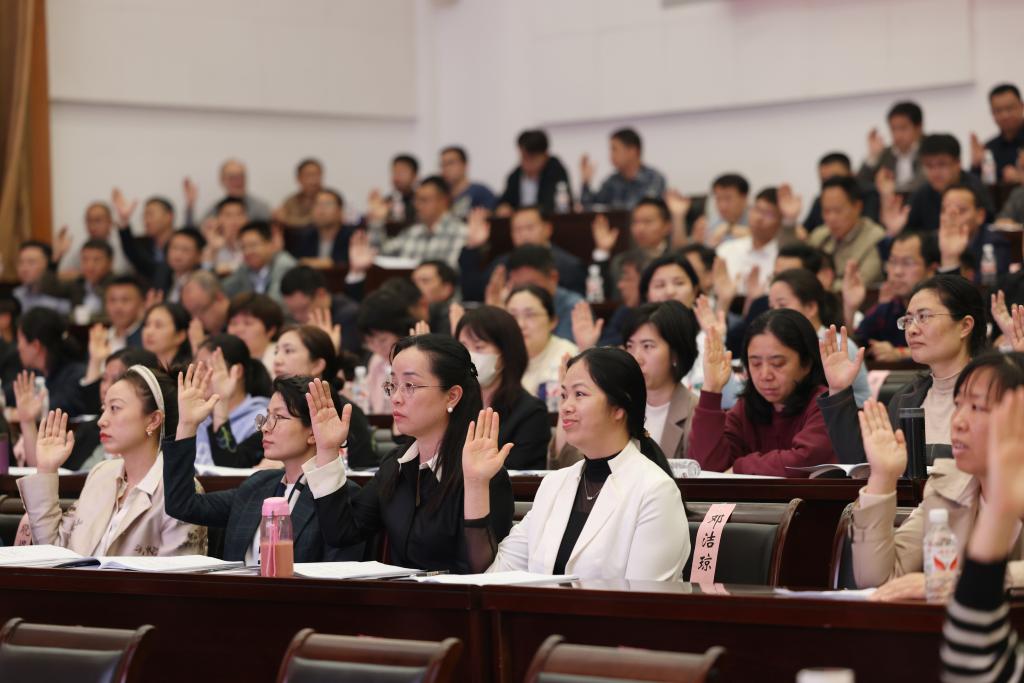 与会代表进行材料审议、举手表决、投票选举