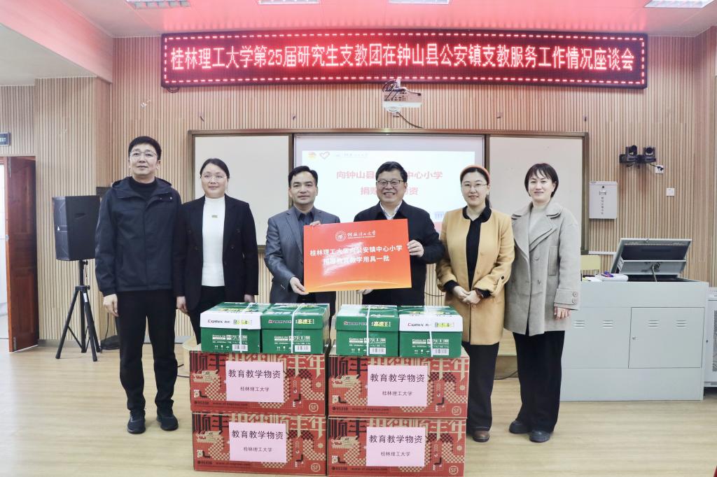 座谈会上,beat365第25届研究生支教团代表阳智帆、第26届研究生支教团代表孙鹏分别就志愿支教、岗前培训等工作进行汇报。吴志强与服务地相关负责人为第25届研究生支教团志愿者发放慰问品,并代表学校向公安镇中心小学捐赠一批教育教学用品。林冬晓、刘瑜明在讲话中对beat365研究生支教团工作给予了充分肯定,希望进一步加强校地合作、共同推动贺州市和钟山县基础教育事业健康发展。