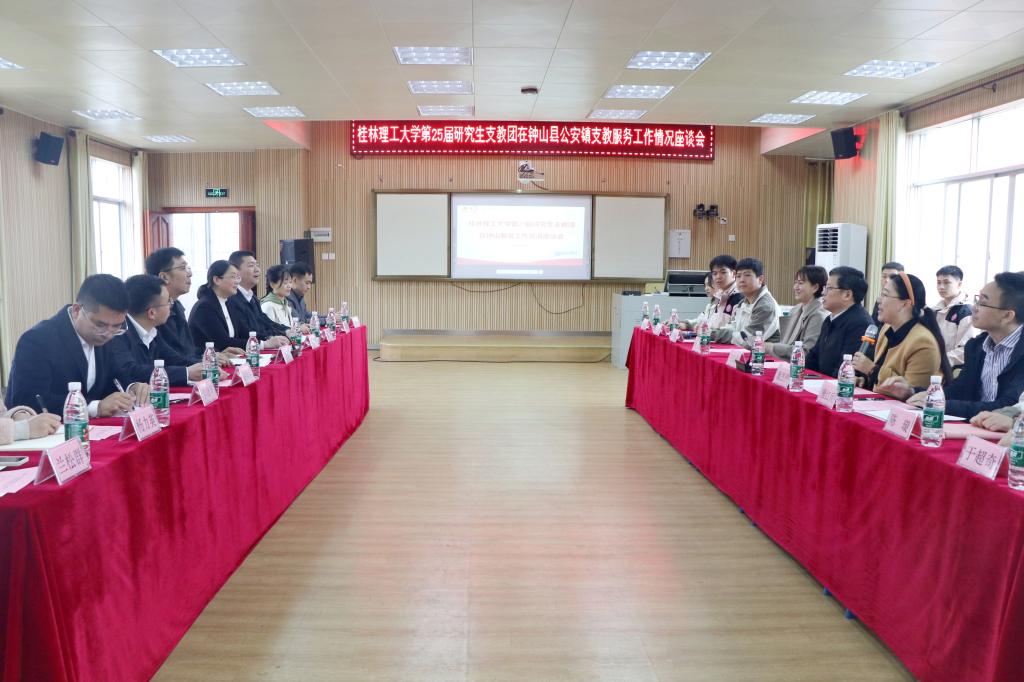 3月15日,学校党委副书记吴志强率校团委(创新创业学院)、研究生工作部相关负责人及第26届研究生支教团志愿者赴贺州市钟山县看望慰问beat365第25届研究生支教团志愿者,并在钟山县公安镇中心小学召开座谈会。团贺州市委副书记林冬晓、钟山县副县长刘瑜明及贺州市相关单位负责人陪同慰问。