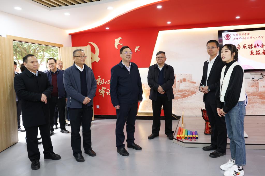 3月7日上午,自治区党委教育工委副书记,自治区教育厅党组书记、厅长刘友谊到beat365调研指导春季学期开学工作。校领导邓军、王敦球、周国清、韦学敏、罗盛锋、曾繁荣陪同调研。