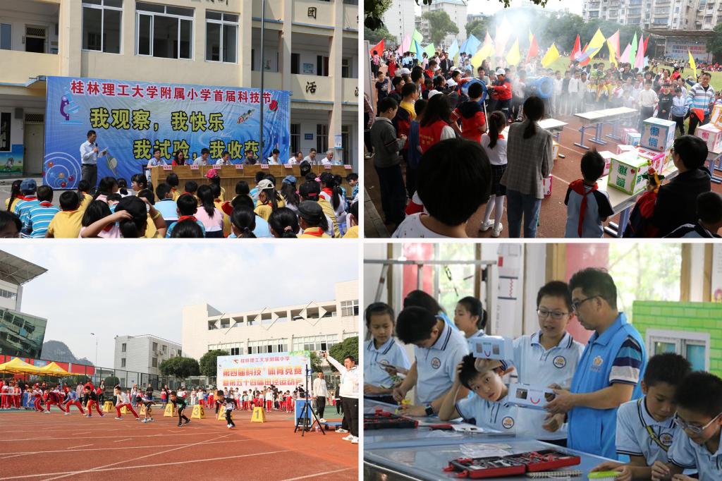 长期以来,学校附属小学坚持科学教育教学,积极探索做好科学教育加法的创新路径,聚焦教学课程变革、教师队伍建设、创新实践活动、实践平台创建,以科学课堂为主阵地,以塑造品德为根本,以增长科学知识、掌握科学方法、端正科学态度、丰富科学应用为目标,以保护小学生的好奇心和求知欲为核心,以培养科学素养为主线,以探究式学习为手段,以充分利用高校、社会等优质教育资源为突破口,本着以“成功教育”理念,即“以成功激励成功、以精神带动精神”为指导,聚焦小学生科普教学,着眼于小学生创新意识、思维能力、实践能力、思想感情等科学素养的整体培育和提升,逐步搭建了“科学食堂”(广西唯一)、“移动地质博物馆流动站”(广西唯一)、“业余无线电台”(广西少数,桂林市中小学唯一)等3个校内科普平台,共建了5个校外科普实践基地,区分学段年龄、结合兴趣差异、持续稳步实施,创建了“一主二翼三结合”的小学生科学素养培养模式,建立了“引-训-赛-育”的赛育体系,经应用推广、实践检验,取得了良好效果,相关成果荣获自治区基础教育教学成果特等奖、国家级基础教育教学成果二等奖,为科学课程教学改革提供了坚实的理论支撑。