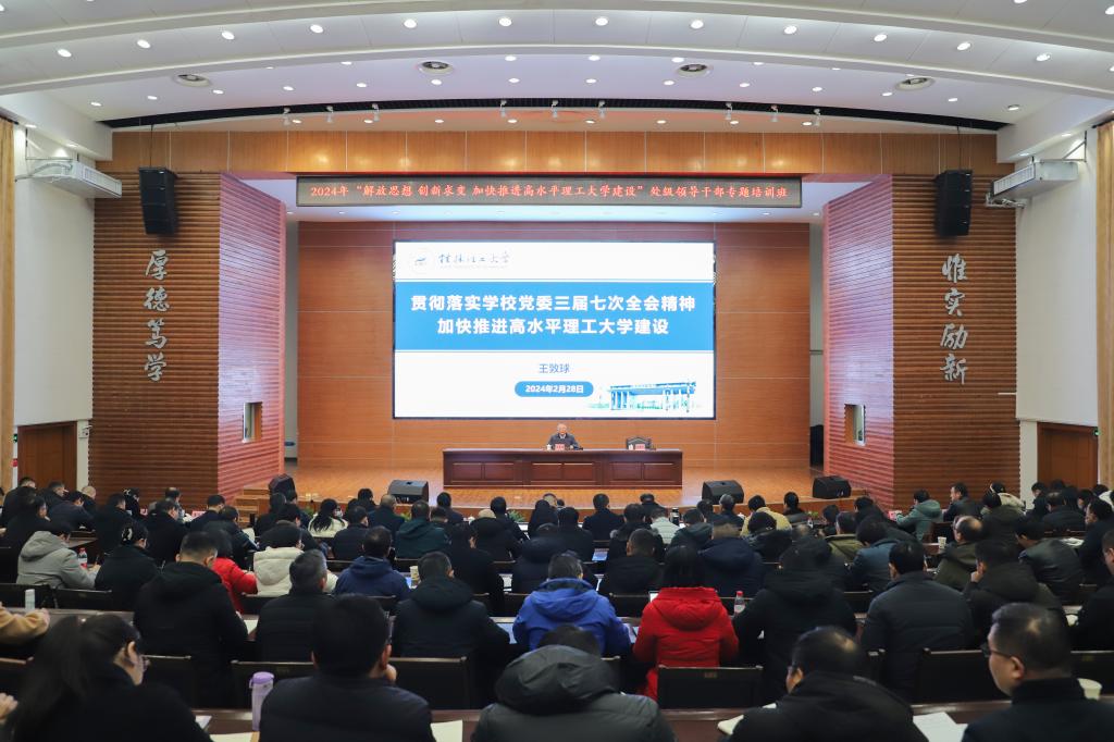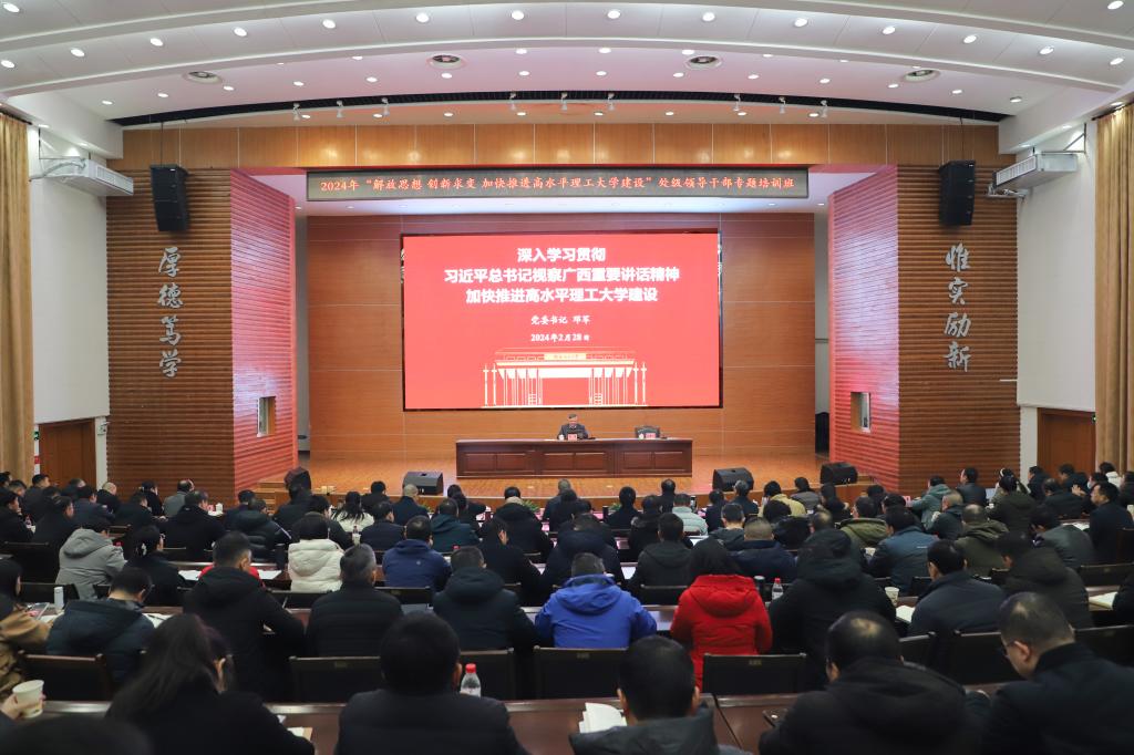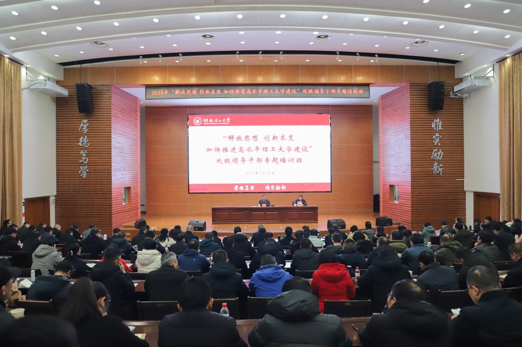 人勤春来早,奋进正当时。2月28日上午,学校2024年“解放思想 创新求变 加快推进高水平理工大学建设”处级领导干部专题培训班在屏风校区图书馆报告厅拉开帷幕。校党委书记邓军,党委副书记、校长王敦球作专题辅导报告。校党委副书记吴志强主持专题报告会,校领导周国清、王磊、黎贞崇、罗盛锋、曾繁荣出席,全校处级领导干部参加培训。